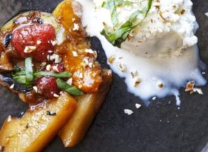 FRUIT COMPOTE WITH AMERICANA ICE CREAM, PALIEN, AND MINT
