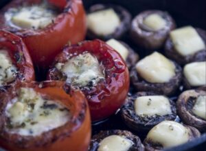 STUFFED TOMATOES AND MUSHROOMS ON THE KAMADO